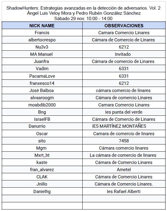 Por tanto, al finalizar el taller, los estudiantes tendrán una visión clara y precisa de cómo se pueden detectar amenazas avanzadas dentro de una organización, asistiéndose para ello en Splunk.
